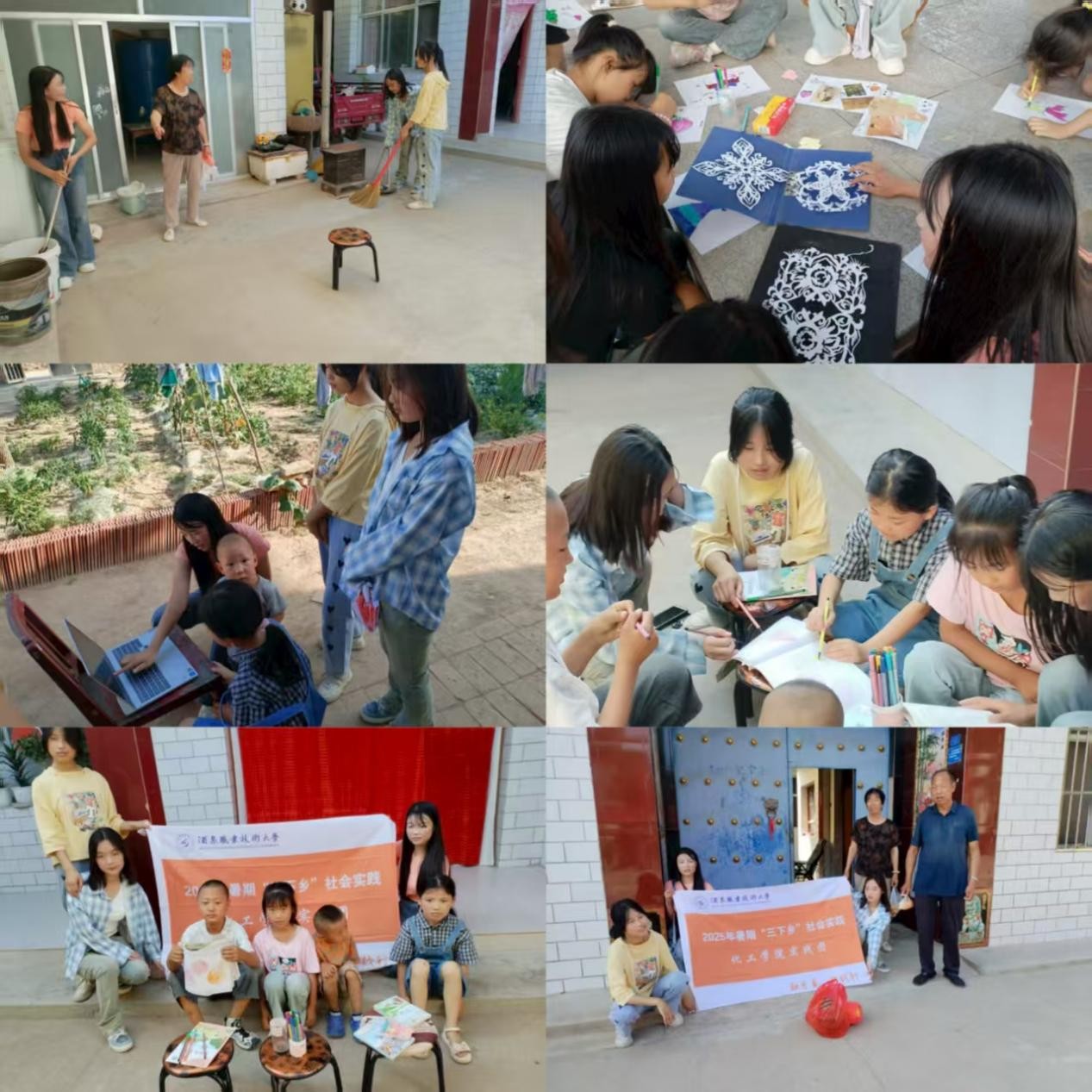 老幼群体的福祉是乡村温暖的底色。团队走进独居老人家中,不仅帮助打扫屋内屋外、清除院落杂草,更送上了暖心的陪伴与关怀。面向乡村儿童,队员们巧妙结合剪纸趣味互动与专业环保知识讲解,在欢乐氛围中拉近距离,引导孩子们从小树立环保意识,培养绿色生活习惯,让生态文明的种子在少年心中生根发芽。