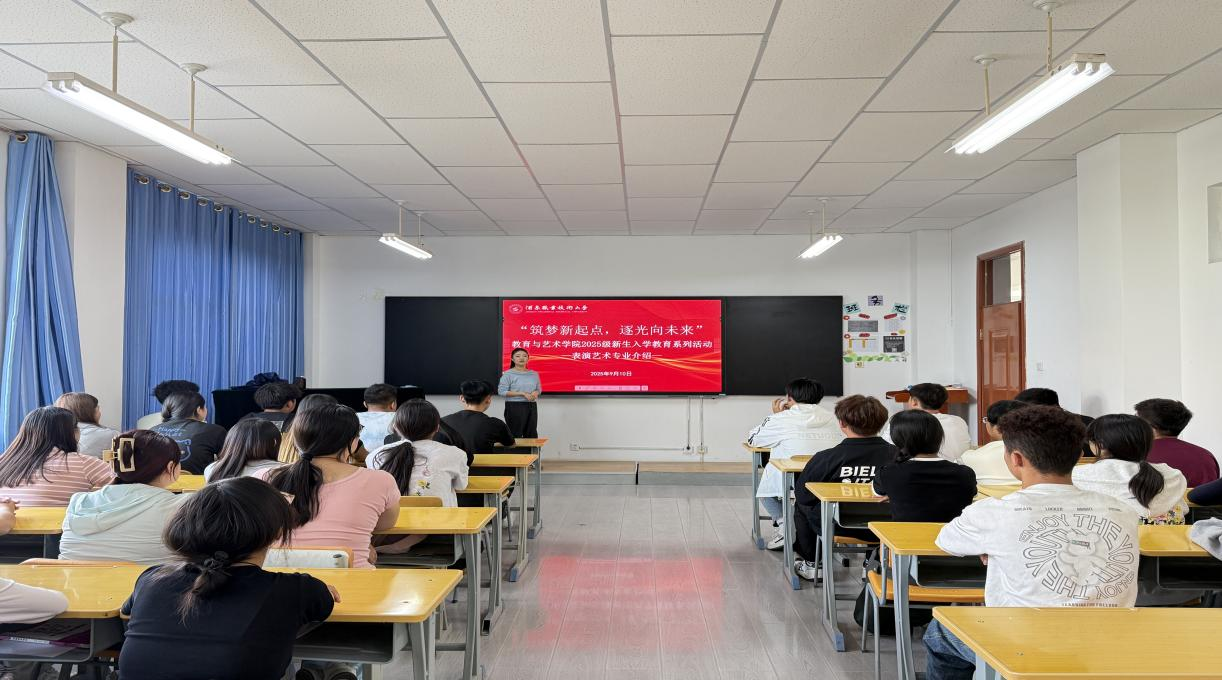 院系动态 > 正文秋韵启新程,奋斗铸青春。为进一步加强家校沟通,凝聚育人合力,帮助新生更好地适应大学生活并科学规划未来学习发展方向。9月9日——9月11日,教育与艺术学院精心组织开展2025级新生入学教育系列活动——新生家长见面会及专业介绍会,为2025级新生开启了大学生涯的序幕。